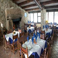 Disfrute de deliciosa comida del lugar en la amplia terraza de nuestro bar-restaurante, que también dispone de un agradable salón con chimenea para los meses más fríos.